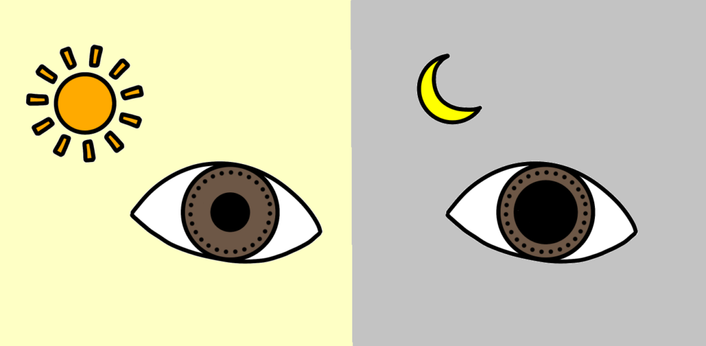 自律神経が乱れると、この瞳孔の調節がうまくいかなくなり、必要以上に光を取り込んでしまったり、調節が遅れたりすることで、まぶしさを強く感じるようになります。特に交感神経が過剰に働いている状態では、瞳孔が開き気味になり、光に対して敏感になることがあります。