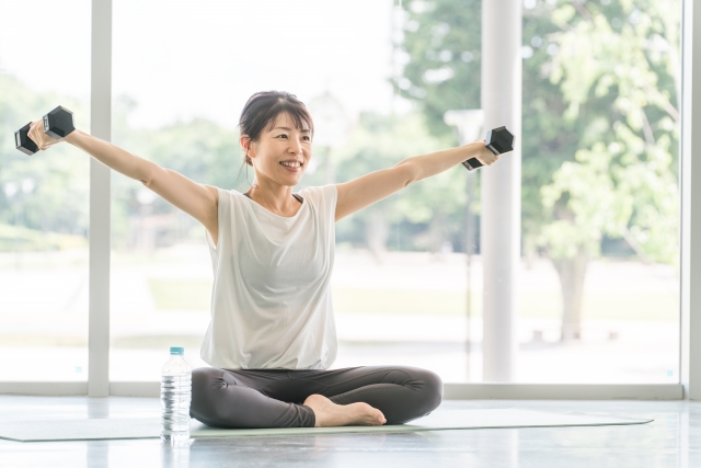 自宅でも取り組みやすいのが、チューブやダンベルを使った軽めの負荷でのトレーニングです。大切なのは重量ではなく、正しいフォームで筋肉を意識しながら動かすこと。息を止めず、ゆっくりとした動作で行うことで、筋肉だけでなく自律神経のバランスも整えられます。