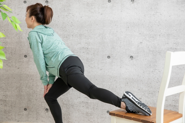 また、膝周りの筋肉が硬くなっていると関節への負担が増えるため、お風呂上がりなどにストレッチを行うことも有効です。仰向けに寝て片膝を両手で抱え、胸に引き寄せるストレッチや、椅子に座って片足を前に伸ばし、つま先を手前に引くストレッチなどがおすすめです。