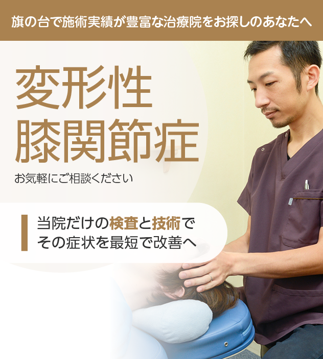 変形性膝関節症は早めに対処すればするほど、改善までの期間も早く、楽に過ごせるようになります。知識と経験のある私たちに、ぜひお任せください。