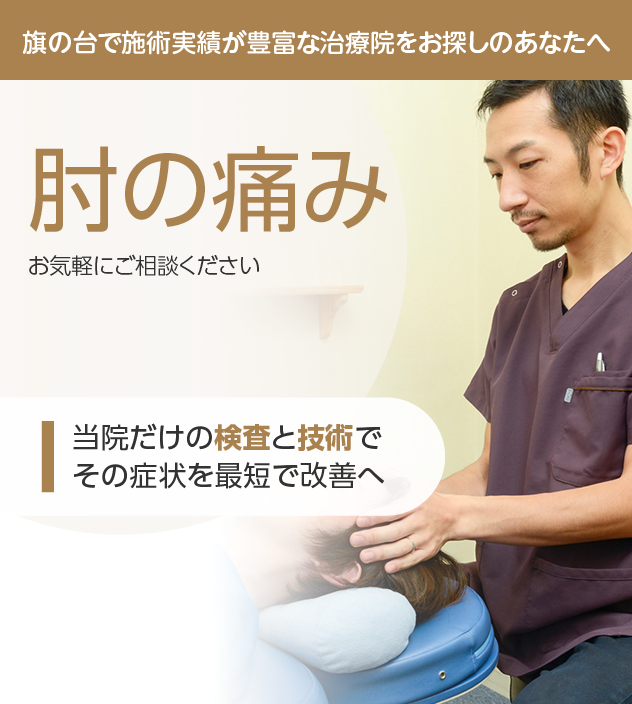 肘の痛みは早めに対処すればするほど、改善までの期間も早く、楽に過ごせるようになります。知識と経験のある私たちに、ぜひお任せください。